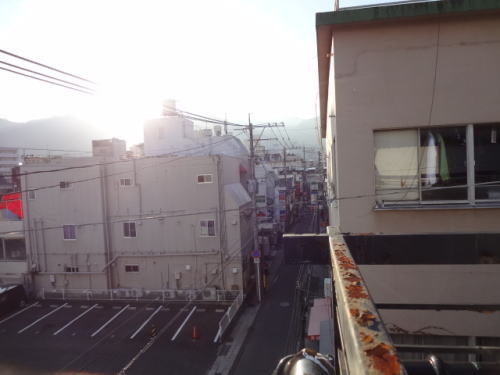 | 部屋の3階から街を眺めたもの | 野上本館は竹瓦通りにあり別府中心街のほぼ中心にあり | |