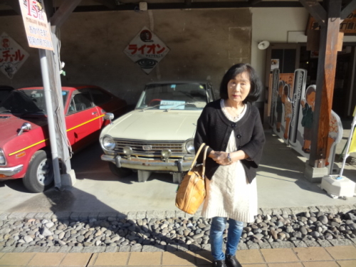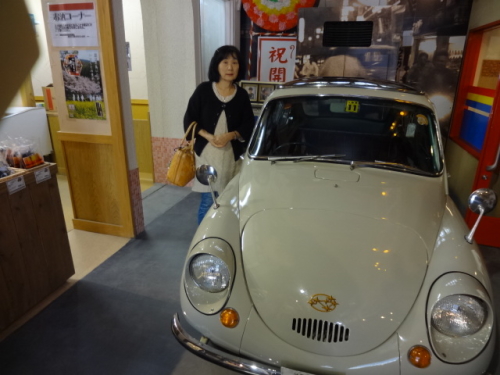| 昭和の町展示館内で40年代の車が バックは42年式の日産サニー | 40年代のスバル360と一緒に | |