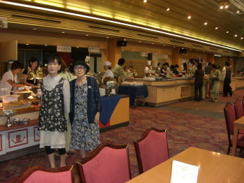 | 夕食バイキング会場にて 全てに美味しい食事であったが、その中でもイクラの入れ放題どんぶりが特においしかった。 |