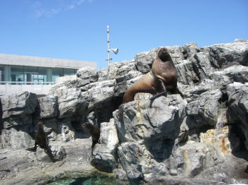 | マリンパレス内 「とどの演技中」で魚の空中キャッチがとても上手でした |