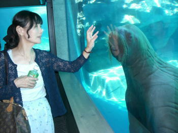 とても愛嬌のあるセイウチ。 ガラス越しであるがすり寄ってきました。 |
