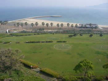 | 客室609号室バルコニーからの眺め 眼下はミニゴルフ場が、その先は砂浜から東シナ海が一面に広がり眺望抜群 |