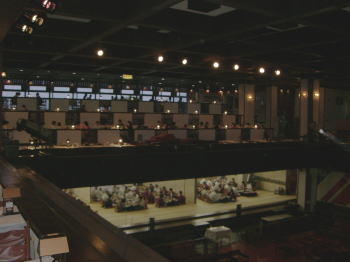 | 夕食は階下のステージが見下ろせるダイニングレストラン。 豪華な作りでショウを見ながらの食事は満足なひと時を味わえました。 |