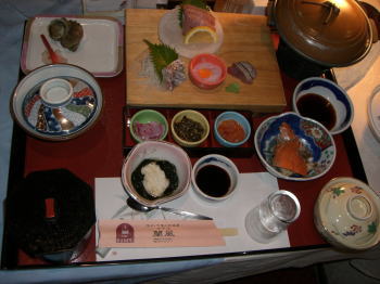 | テーブルごとに仕切られた場所での夕食。階下にはショウが見れるようになっており豪華なつくりでした。 | 夕食のメニュー 魚料理をメインとしながらも平戸牛もあり、美味しくお腹いっぱいで満足。 | |||||||||||||||||||||||||||||||||