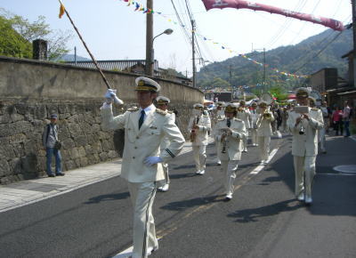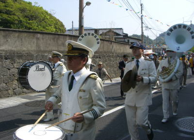 | 朝9時、佐賀県警のパレードで陶器市の幕開け | |