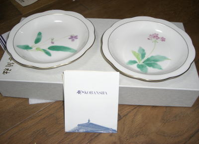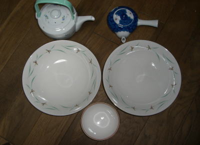 | 【香蘭社で買った品 】パスタやラーメンなど多目的に使用できる深皿、茶碗、 それにお買い得のお店で買った急須 | 5,000円の福袋に入っていた5枚組のさら |
