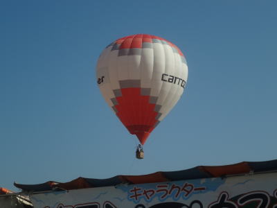 | バルーン広場には係留中のバルーンが並んでいる | 会場近くをゆっくり漂っている | |