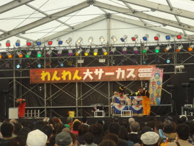 | うまかもん市場内で | 憩いの広場イベント会場ではワンワン大サーカスが催されていた | |