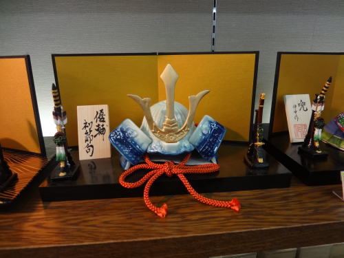| 有田焼おろし団地中央部に飾られている茶わんを積み重ねている神輿 | 顕輔とゆうのさんの子供(優輔クン)に有田焼の兜を購入 | |