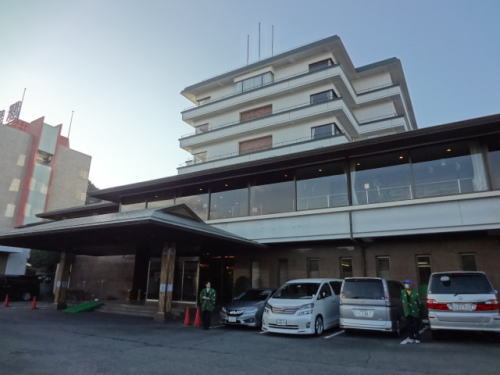 | 神泉閣正面 玄関口には駐車場整理の方が待機し、たくさんの車をスムーズ誘導 | シーボルトの足湯、無料で足湯が楽しめるため時折観光客がくつろいでいました | |