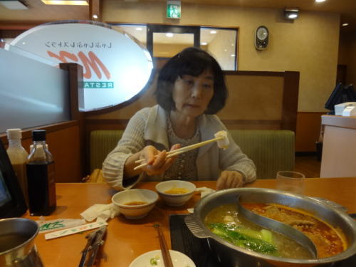 | 昼食はイオン前にあるMKレストランでしゃぶしゃぶバイキング | スープはMKオリジナルスープとチゲスープ。料金は一人1450円 | |