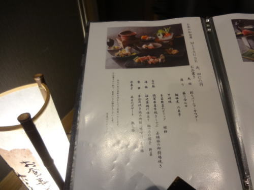| 頂いた食事メニュー 5400円 | 膳座敷 季味の入り口付近 | |