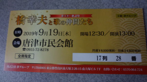 | 夢グループ スター歌謡祭 橋幸夫と歌の仲間たち 2019年 9月 19日 |