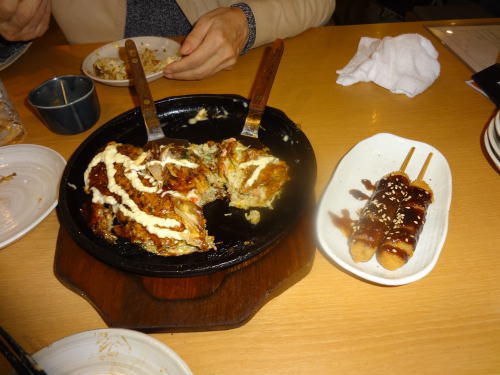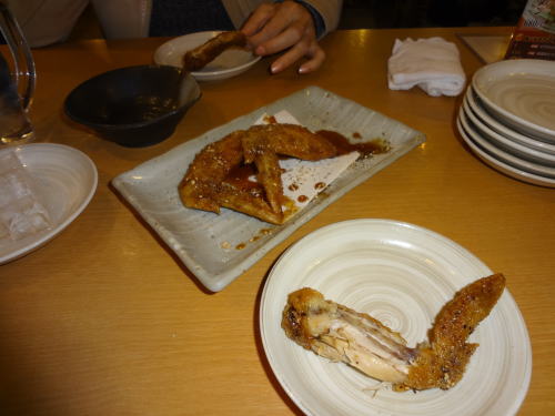 | ホテルの近くにあった居酒屋で夕食を 名古屋名物手羽先 | 串カツとお好み焼きも頂きました | |