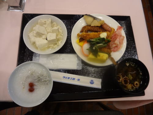 | 富士第一ホテルの朝食 バイキングで手羽先と串カツも頂きました | 富士第一ホテル9階より名古屋駅方面を撮影 | |