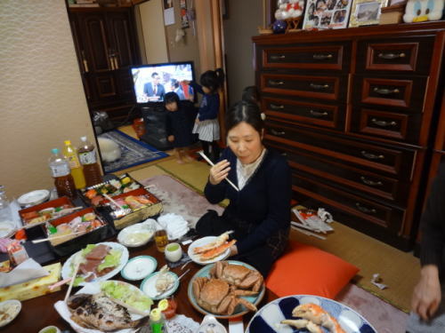 | 心花、愛花、絹代さん | かおりさん 毛ガニは達則が送ってくれたもの | |