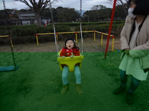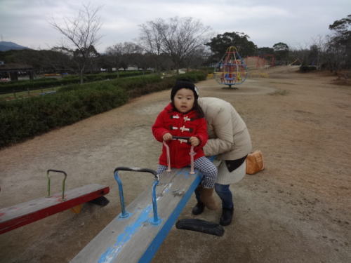 | シーソーでも楽しそうに遊んでいました | ブランコは1人でこげて気に入っているようでした | |