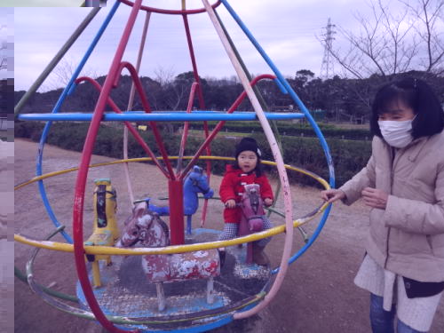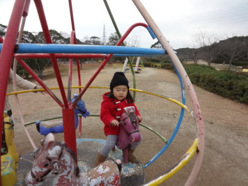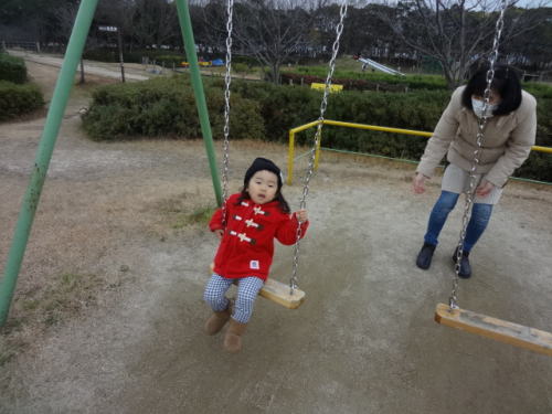 | 愛花ちゃんはよく動いて、椅子を頼べばすぐ持ってきてくれます | 心花ちゃんと河畔公園でブランコ遊び | |