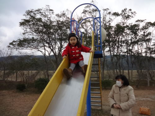 | 滑り台も気に入っているようでした | 山の上から滑る滑り台も挑戦しました | |