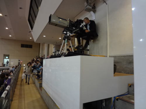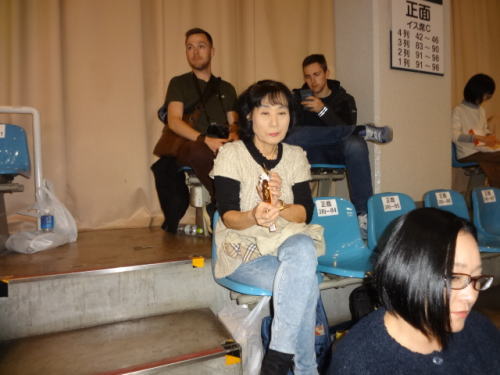 | 3階席にカメラと解説者関が、当日の解説者は芝田山親方 | 十両の取り組み中 | |