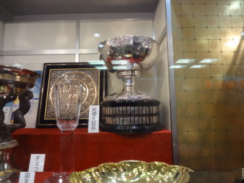 | 1階フロアには優勝者の送られるトロフィが飾られている | 優勝者に送られる賜杯 | |