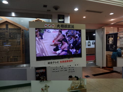 | 逸ノ城と妙義龍の仕切り | 結びの一番は混雑を避けるため1階のNHKモニターで観戦、ちなみに取り組みは栃ノ心と正代 | |