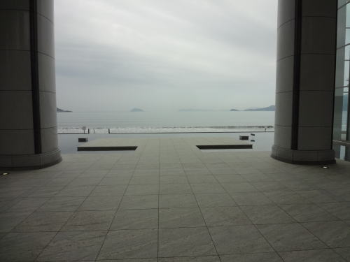 | シーサイドホテルの東館と西館をつないでいるテラス | 東館にある月波楼 入り口付近。 バイキング料金は1640円/人。 | |