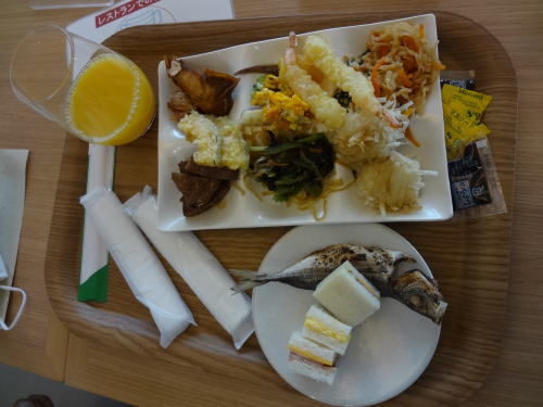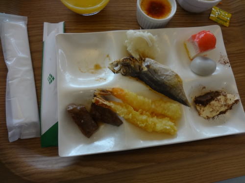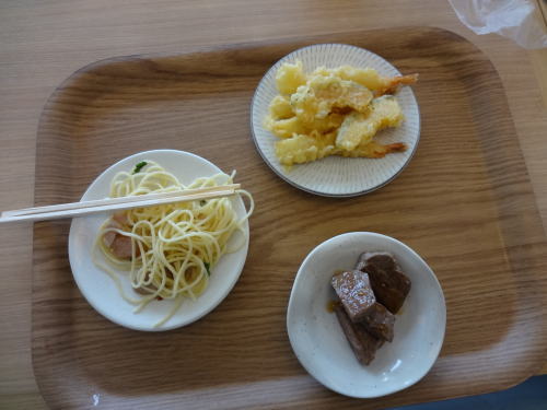 | 写真はペペロンチーノ、エビとかぼちゃの天ぷら、ステーキ肉 | あじの干物、エビの天ぷら、ステーキ肉、アイスクリームやデザートなど | |
