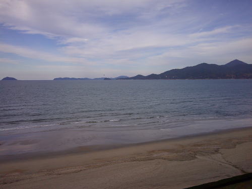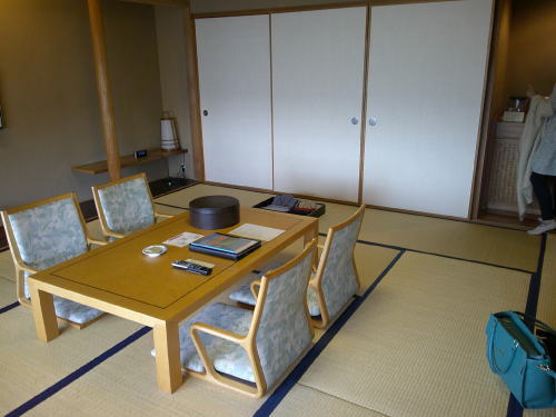 | 今回泊まった部屋は和室のみの部屋 | 4階の部屋からは唐津湾が一望、遠くに見えるのが糸島半島 | |