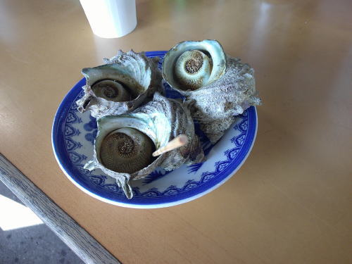 | 3番目に寄ったところは名護屋にある道の駅太閤物産館 | 4番目寄ったところは波戸岬にあるサザエのつぼ焼き販売所 | |