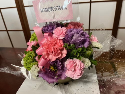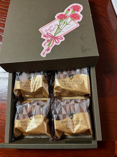 | 顕輔からのプレゼント カーネーション | HOSHI FARMの焦がしキャラメルがしみ込んだパーム | |