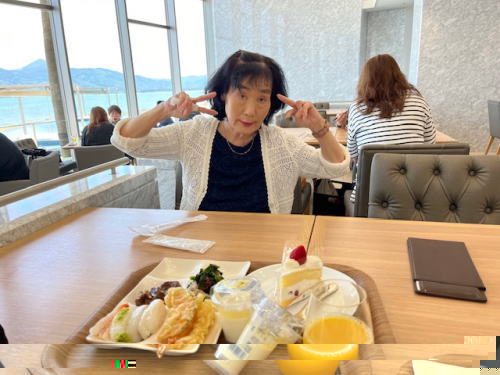 | 母の日、食事会会場の唐津シーサイドホテル | シーサイドホテル入り口で記念撮影 | |