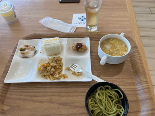 | 食事前に記念撮影 | 写真はソバ、チャーハン、カニスープ、サンドイッチ、アジフライ等 | |