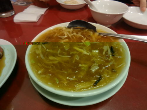 | ふかひれスープ、とても美味しかった。 | エビチリソース | |