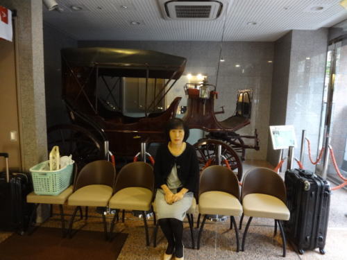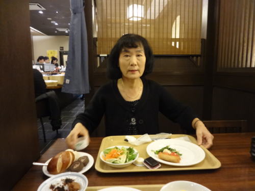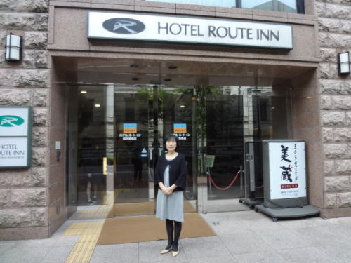| ホテルでの朝食私たちがいただいた場所は間仕切りの個室で | ホテルルートインの玄関前で | |