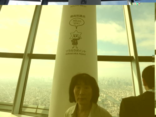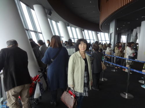 | 展望回廊 450m 展望回廊への入場券は再度1030円/大人 | 展望回廊にて東京の街をバックに記念撮影 | |
