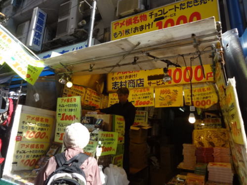 | アメ横名物チョコレートの大安売り 今回はチョコレート買いませんでした | 昼食はアメ横の豊丸水産で | |