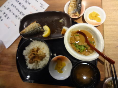 | 豊丸水産での昼食 サバの塩焼きとホルモンの煮込み | 上野駅前にて | |