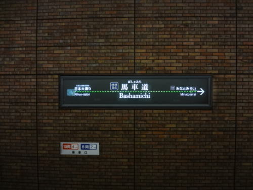 | みなとみらい線の馬車道ホーム 左方面が日大通り、右方面がみなとみらい駅 | ||