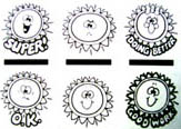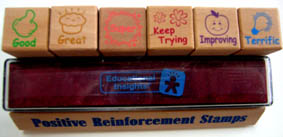 | セルフインクスタンプ 2,100円-->1,600円 12個セット スタンプ直径3cm スタンプ台不要です。赤、青、オレンジ、紫の4色 デザインはこちら 在庫無し |