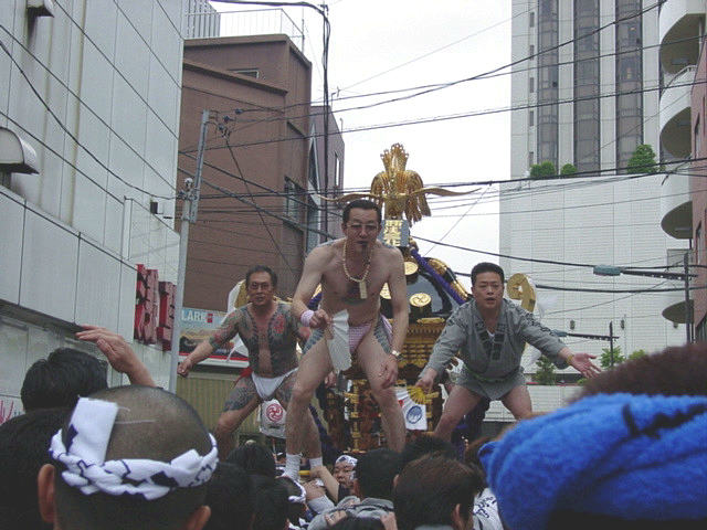 | さあ〜て今年も三社祭in西浅三北楽しんできました!17日(土)の朝の雨で「あ〜今年はだめかな〜」って思ったけど、大降りにならずにすんで良かったです。曇ってはいましたけれど、担ぐにはちょうどいい気温だったのではないかな?ここのページも密かにマニアに受けてるらしいので、今年はデジカメと一眼レフとで総計300枚を越える写真を撮ってしまいました。ピントの合ってる写真をさがして(爆)昨年より多め(たぶん)に掲載します。言葉で説明するより写真の方が伝わるモノが違いますから。 私も今年はかなり担がせてもらいました。左肩はちょっと盛りあがってました。(笑)担いで撮って談笑して、一年で一番楽しい時間を過ごせました。大満足です。お世話になったみなさまありがとうございました。ということで、平成15年(2003年)三社祭、西浅草三丁目北部町会の様子をレポしま〜す! 毎度の事ながら私の独断と偏見で創っているページですので、あしからずご了承を。 ☆掲載している写真は無断で持っていかないでくださいね。欲しい方はメールください。☆ |