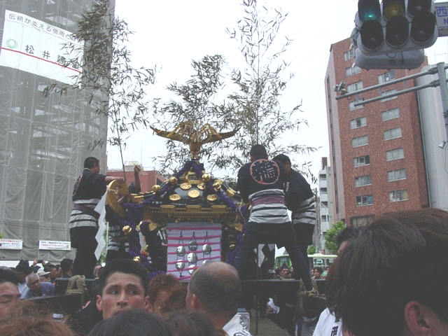 三北神輿の町内渡御まで待機。今年もお祭り広場(雷門前の通り)に行かず(一説によると「西浅三北は来てくれるな」となっているらしい)国際通り、言問通りの渡御になるのでした。ハッキリ言って好きな人は見に来るわけだから三北が渡御したらそこがお祭り広場みたいになってしまうのだけど。 14:30過ぎ町内渡御開始。でも中村会のところで小休止。<いつものことなのです。私もお茶もらったりしてました。そそっこの町内渡御も今年は自粛なので中村会は渡御には不参加でした。<来年期待してます! この小休止の後、私頑張ってしまいました!少し進んでから入ったのが花棒の三番目くらい。どかされるまで、と思っていたら前は交代するけど、どけっと言われないので粘る私。抜けようかとも思うし、粘ったろか〜とも。そうしている内に国際通りに出る手前の(丸金と合流する)ウマが見えてきて・・・そしたら私の前は誰も居なくなり、花棒ゲーッチュ!(笑)ウマまで担いでしまいました。今までの最長記録でした。(わかる人には距離がわかる?)抜けた直後はクラックラしてたわっ。 |