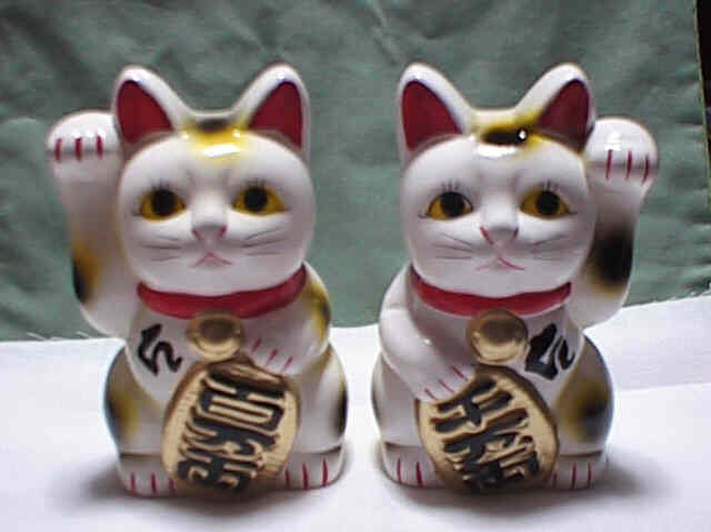 また、金色・黄色は金運、黒は厄除け、赤は病気除け、ピンクは恋招き、三毛は幸運を招く、白は福を呼ぶなどとされています。この辺に関しては私が良くお邪魔している招猫倶楽部へ行くと、もっと詳しく招き猫に関する事がたくさん書かれています。