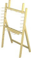 えー、山の神様のリクエストで、手織りのための整経台を作ることになりました。この前作った下駄箱の敷物を織っていただけるるということで、急ぎのご注文です。織り機に懸ける縦糸を計る器具とのことですが、使い方は良くわかりません。(