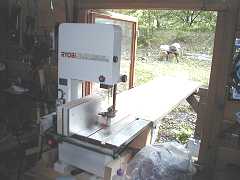 集塵装置?!(冗談です。(^ v ^)> ) ローラーと帯鋸のあいだに削りくずがつまると危険ですが、相当切っても危険水位?までたまらないようです。大量に切る場合は途中で木の棒で掻き出しておしまい。