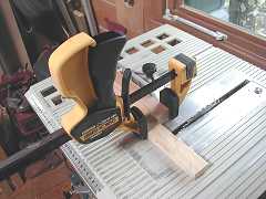 テーブルソーやルータを使う場合は、ご存じクイックグリップを逆にして使っています。送り途中の板のずれがなく、やキックバックや回転する歯に手を近づける不安が減らせます。あまり本来のクランプとして使うことはありません。