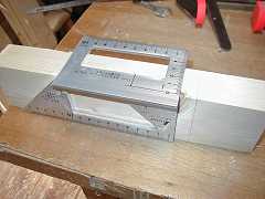 今回はあっさり平ホゾです。罫書きはこんな定規を使います。2面を同時に罫書くことができて楽です。1周ぐるりと回してもとの線と合わない場合は、面の平行がでていないことになります。