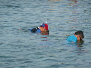 何度入っても飽きない銚子川の川遊び、子供もずいぶん泳ぎが上手になったもんだ。今年は本当に川の水量がなく、流れも逆流?って感じで安心して遊ばせられた。 |