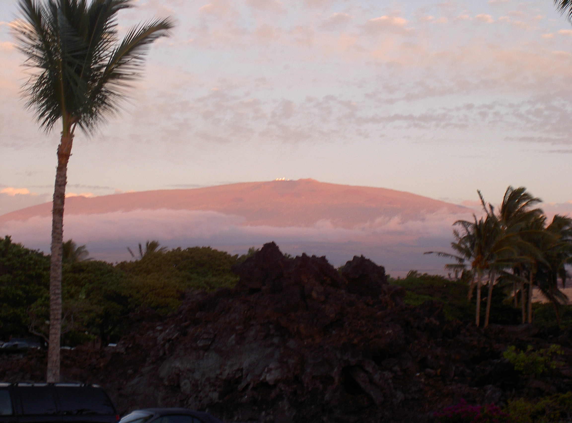 | 夕日に映えるハラアカラ山 山頂の天文台が見えるかな? |