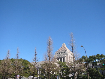 仕方ないので、道路から見た国会議事堂の裏側?の写真でも載せましょう。